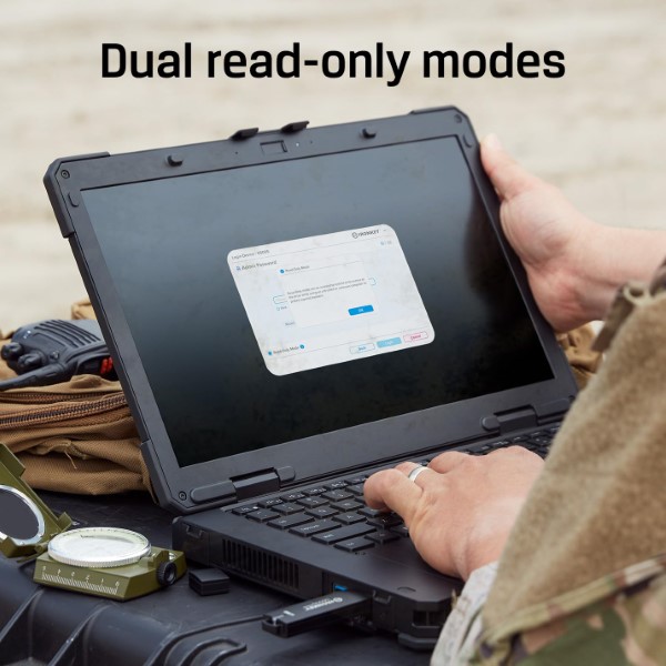 D500S also supports two levels of Read-Only (Write-Protect) Modes. Both Admin and User can set a session-based Read-Only mode to protect the drive from malware on untrusted systems. Admin can also set a Global Read-Only mode that sets the drive in Read-Only mode until reset.