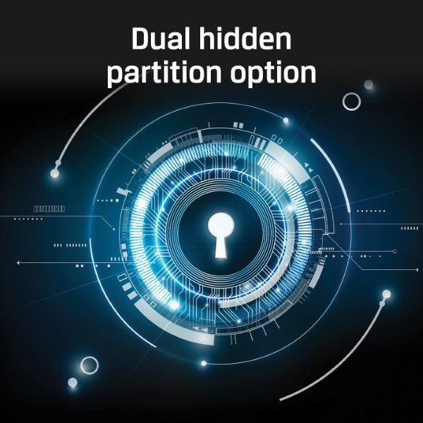 D500S includes an industry-first Dual Hidden Partition option where Admin can create two custom-sized secure partitions for Admin and User, thereby allowing for a Hidden File Store that can be used to provision files to the User partition as needed. When using untrusted systems or sharing the drive, the Hidden File Stores keep their data secure and invisible unless properly accessed.